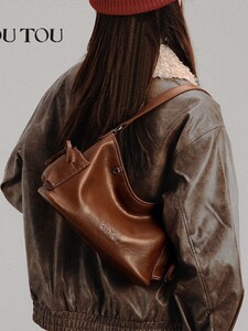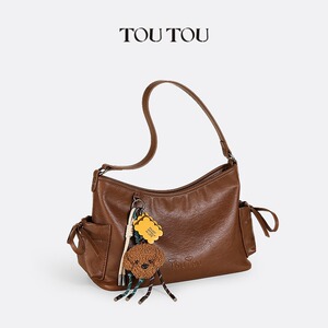 TOUTOU2025 春の新作ミートフロス子犬トートバッグマルチポケット脇の下バッグ多用途ソフトレザークロスボディバッグ女性用