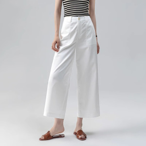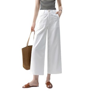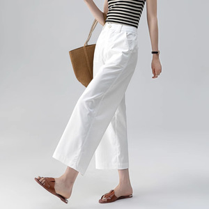 女性用ワイドレッグパンツ夏薄い白カジュアルストレートレディースパンツハイウエストスリム通勤ルーズ9点パンツ女性用