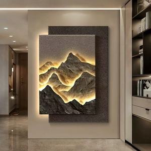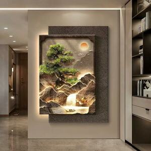 無垢材の玄関ホール装飾絵画新しい中国風のテクスチャ廊下わびさびフレームレス発光ハイエンドエンド吊り絵画