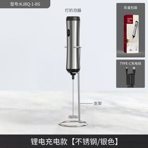 D2モデル【リチウム電池充電モデル】シルバー/ステンレス素材/電動ミルク泡立て器+収納ブラケット+TypeC充電ケーブル