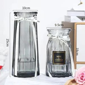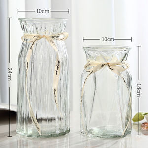 クリエイティブな花瓶ガラス透明水リビングルームの装飾品フラワーアレンジメント北欧シンプルなリッチバンブードライフラワー