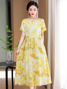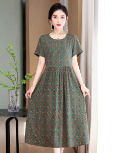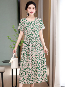 中高年ブランド上海綿シルクドレス女性の夏の 2025 新しい花柄ハイエンド気質ママスカート