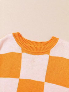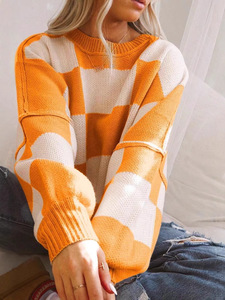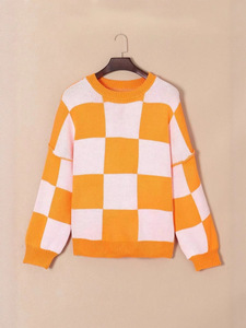2025 春と秋の新プルオーバーラウンドネック長袖トップス女性のヨーロッパとアメリカのルーズカジュアルチェック柄カラーブロックセーター女性