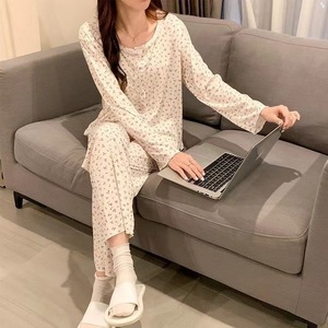 纯欲风春秋季新款甜美带胸垫吊带睡衣女士圆点长袖三件套家居服