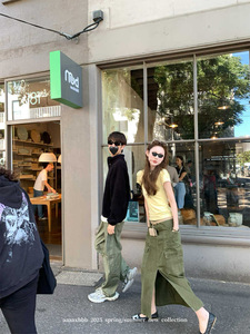 Aaaaxbbbカルダックス2色綿入り水洗いハーフスカートスリットカジュアル高級感ありレギンスロングスカート