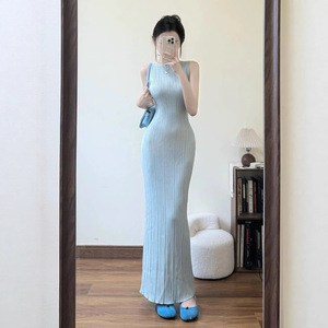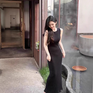 Pure Desire Hot Girl スリムニットスリットロングスカート夏紫ウエストカバーヒップスカートノースリーブベストドレス女性用