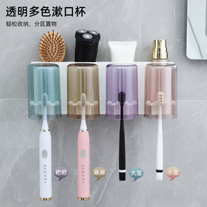 マウスウォッシュカップ、シンプルな歯磨きカップ、クリエイティブで透明なパーソナライズされたカップル用壁掛けプラスチック防塵歯磨きカップセット、家庭用