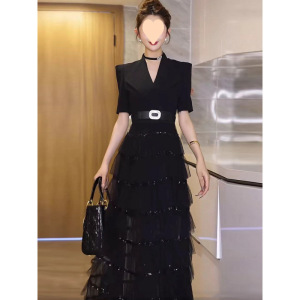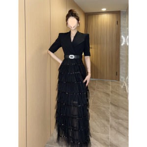 女神のハイエンドの軽い豪華なロングスカート 2025 夏の新しい甘くてスパイシーな肉とお腹をカバーするワンピースドレス