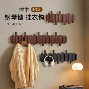 無垢材ピアノキー洋服ハンガー壁掛け洋服フック寝室玄関玄関ドア後部収納パンチフリーコートラック
