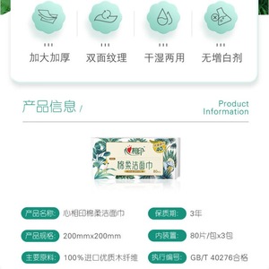 ハートトゥハートプリント、増量、増粘、乾湿両用コットンソフトクレンジングタオル、80枚、100%輸入木繊維洗顔タオル
