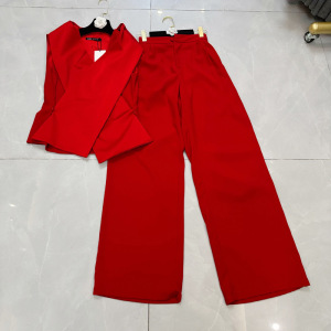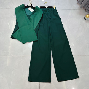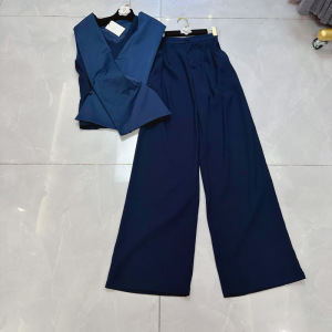 Nanyou ヨーロッパとアメリカのニッチファッションデザイン不規則なベストノースリーブスーツワイドレッグパンツ夏のツーピーススーツ女性用