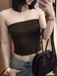 現物と一致する商品 二重折りたたみ式スリムフィットチューブトップ ダークグレー/コーヒー色
