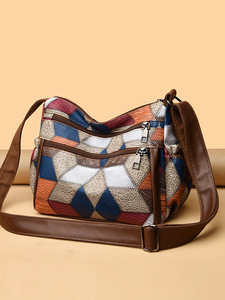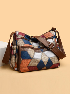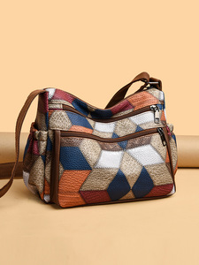 女士中年妈妈包大容量拼接上班通勤软皮多口袋女包挎包复古单肩包