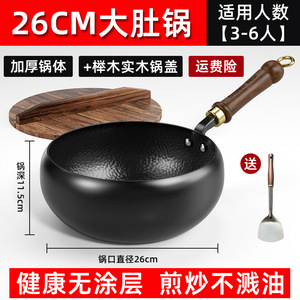 ビッグベリーアイアンポット張丘家庭用鉄鍋旗艦店中華鍋ノンスティック中華鍋昔ながらの鋳鉄鍋