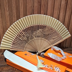 【卸売注文】庭園をテーマにしたギフトボックス入り竹彫りギフト扇子中国扇子古代風扇子