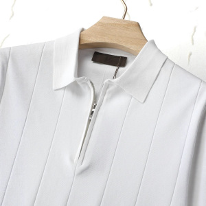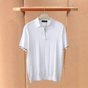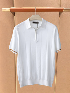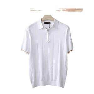 夏の新作 オールドマネースタイル メンズ ビジネスカジュアル ハーフジップ ラペルニット 半袖 薄手ポロシャツ