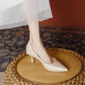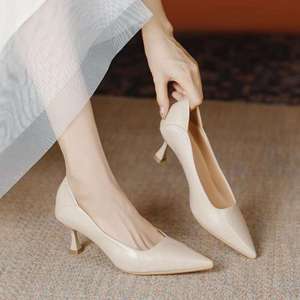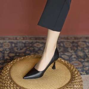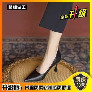 久站不累脚高跟鞋软皮软底细跟尖头上班工作鞋黑色舒适职业单鞋女