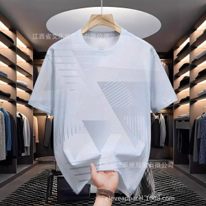 ヨーロッパとアメリカの貿易新しいメンズライトパターンシンプルなスタイル 3D デジタル印刷ルーズラウンドネック半袖男性と女性の標準サイズ T シャツ