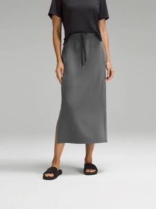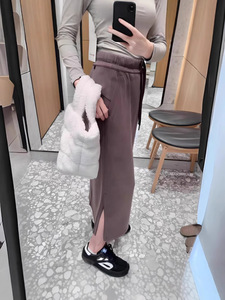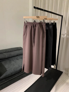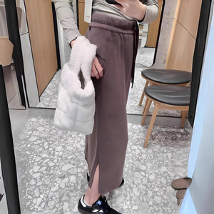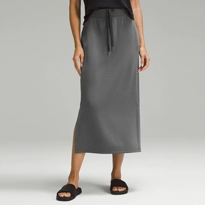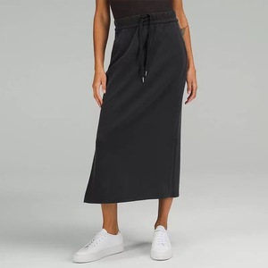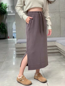 25 夏カジュアル多用途アーバンスポーツスタイル巾着弾性ウエスト両サイドスリットヒップカバー痩身ハーフレングススカート女性用