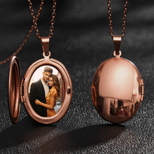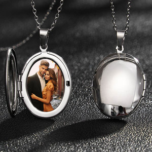 316Lクロスボーダー鏡面研磨ステンレス光沢面楕円形カップル写真フォトフレームフォトボックス記念ネックレスペンダント