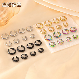 クロスボーダーカラーイヤリング在庫卸売耳ピアスプレーンリングチタン鋼イヤリングライト高級ハイエンド非退色ヨーロッパとアメリカ