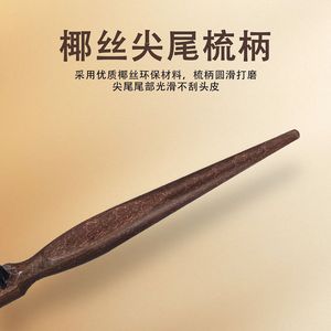 左小妆ココナッツシェルヘアコーム、豚毛細歯コーム、美容用二層毛羽立ちコーム、毛根をふんわりさせるロングハンドル尖尾コーム