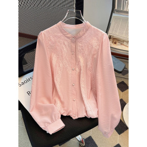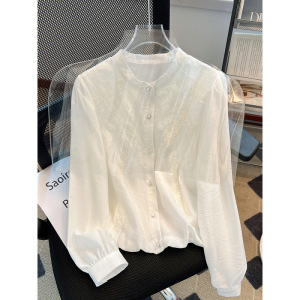 女性用フレンチホワイトシャツ、高級感、2025年春の新作、超見栄えの良いレース長袖美しいシャツトップス