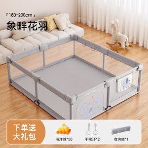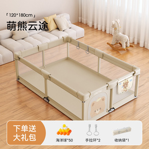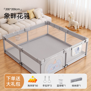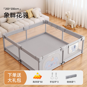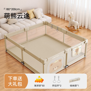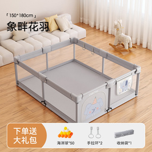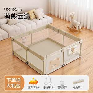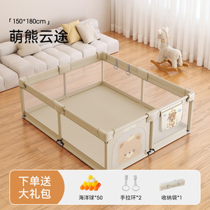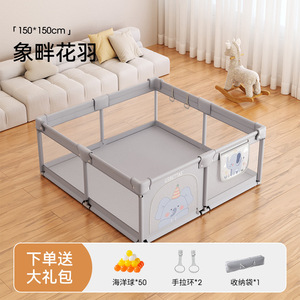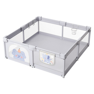 貝ペプチド斯の囲いの赤ちゃんの防護柵の上で爬行します。