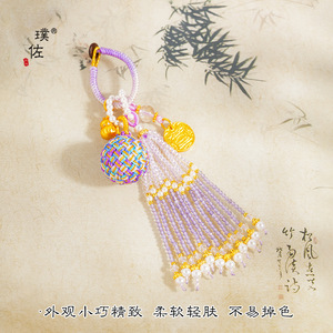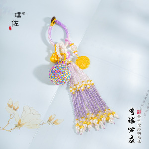 璞佐强保色沙金五路财神藤球流苏钥匙挂车挂有球必应吊坠编织包挂