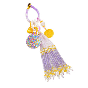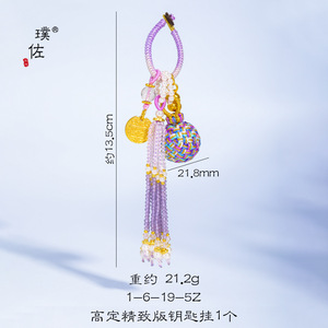 1-6-19-5绿紫五路财神有球必应流苏钥匙扣1个