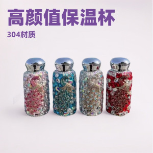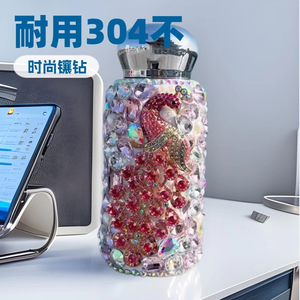 ダイヤモンドがちりばめられた断熱カップ、ポータブルでコンパクトな304ステンレス鋼の車載用ストレートカップ、ピーコックポケットカップ、車載用ポータブル
