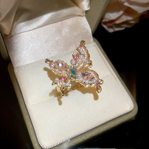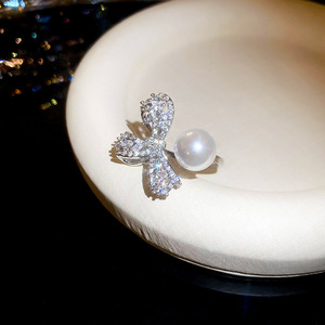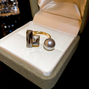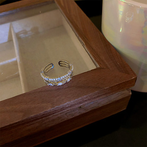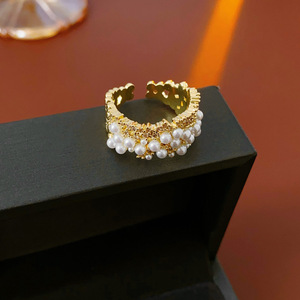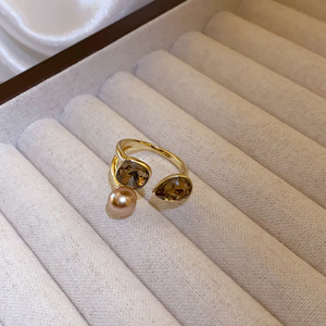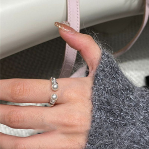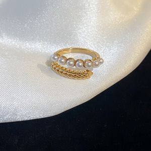 中古風ジルコン麻花真珠開口指輪軽贅沢高級感食指戒シンプルなデザイン感小衆手飾り