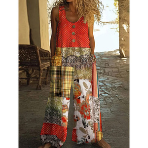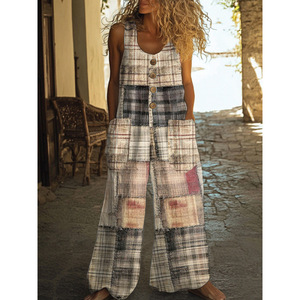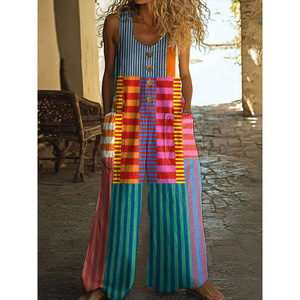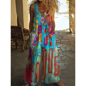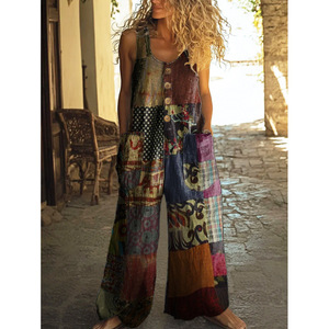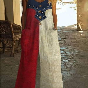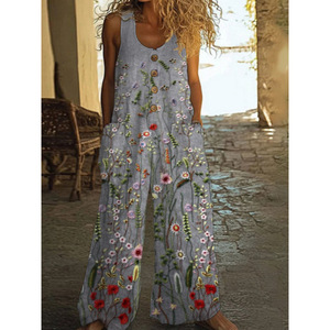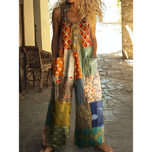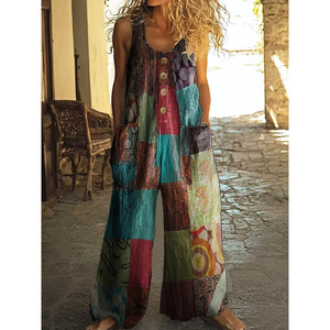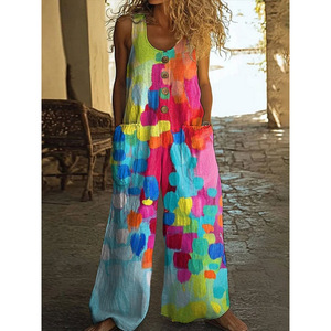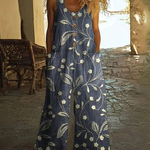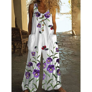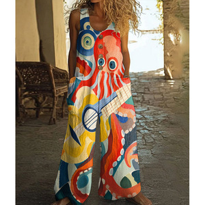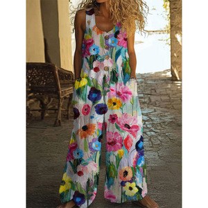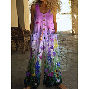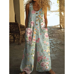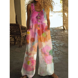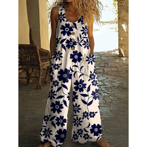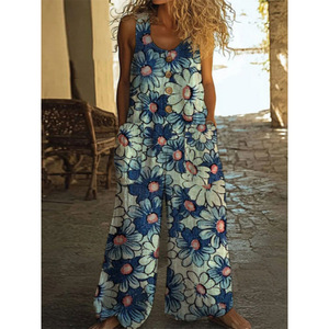 亚马逊欧美跨境3D数码印花女士背心带口袋时尚花卉连体裤