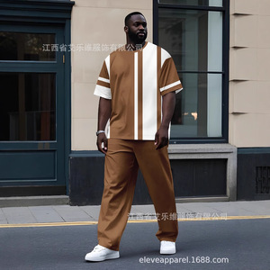 クロスボーダーメンズラウンドネックTシャツとパンツスーツ3Dデジタル印刷シンプルなストライプカラーマッチングスタイルホットセールスポーツセット