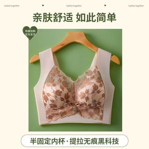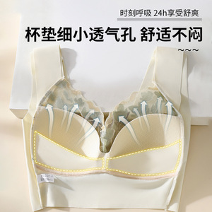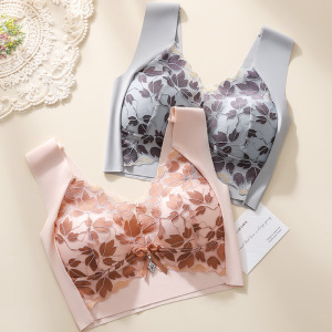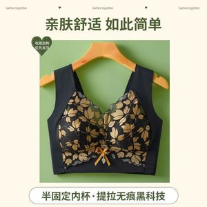 蕾丝冰丝美背大码带胸垫无痕防下垂收副乳无钢圈内衣显小全罩杯