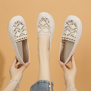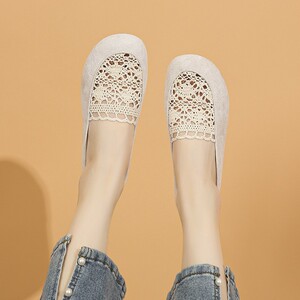 柔らかい底のビーニーシューズ、古い北京布靴、女性用夏用フラットシューズ、女性用リネンメッシュマタニティシューズ、軽量で運転に適しています。