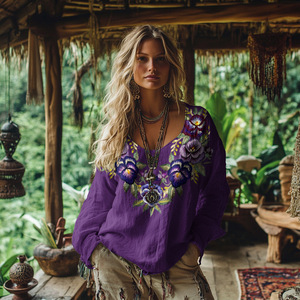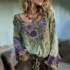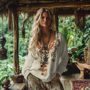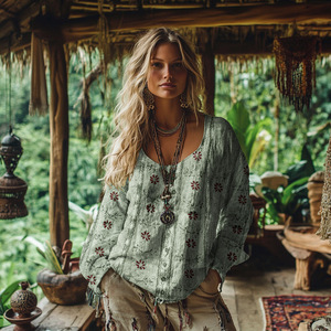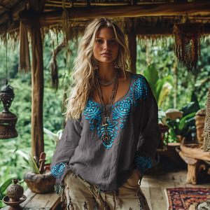 国境を越えた独立駅アマゾンの新型熱売3dデジタルプリント女性の丸首レトロなボヘミアン上着