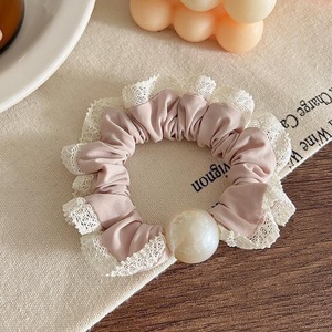ピンクのレースパールヘアゴム