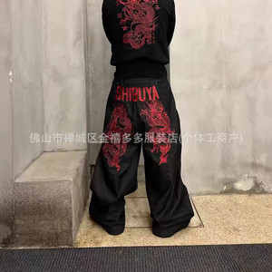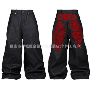 国境を越えた対外貿易の新型重工赤龍刺繍ヒップホップゆるいストレートジーンズのデザイン感の両面にズボン男を着る