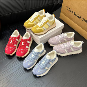 厚底アガルドトレーニングシューズ女性用 2025 夏の新スタイルストライプ人気の小柄な人向けカジュアルスポーツお父さん靴