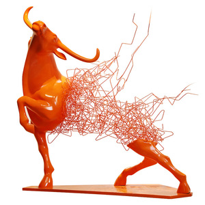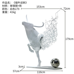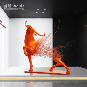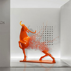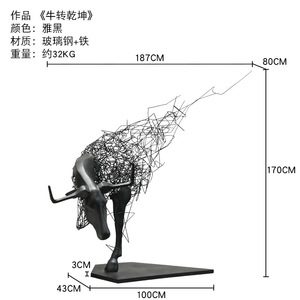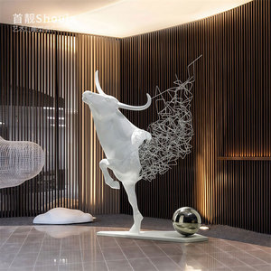 鉄中空牛彫刻ホテル営業所ロビーアートソフトインスタレーション金属工芸品大型床置き装飾品