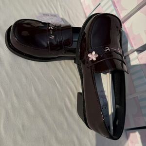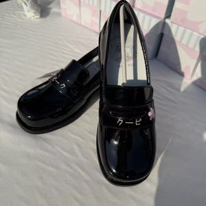 レイジーヤギオリジナルロリータ刺繍ローファーラウンドトゥフラットJKミッドヒール制服靴日本多用途2025秋