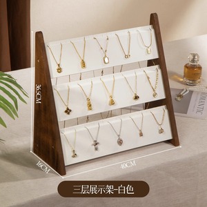 【ウォールナットカラースタンド】三段ネックレススタンド ホワイトレザー