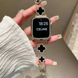 ins [四つ葉のクローバー] ブラックブラックシェル+ダイヤモンドシェル-iwatch789世代 [41mm]