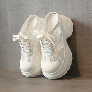 厚底多用途白靴女性用 2025 夏の新しい高さを高めるプラットフォームシューズ片足包頭スリッパ