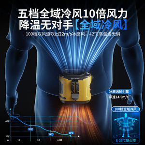 クロスボーダー2025新型腰掛け扇風機屋外騎行工事現場の携帯照明は腰の小さい扇風機を挟みます。