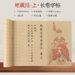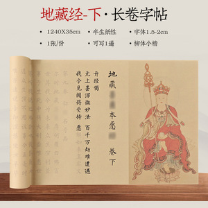 新敦煌壁画カラー長巻写経【地蔵経】万年青地+金墨書き(金筆無料)