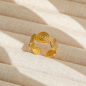 国境を越えた人気の調節可能なチタン鋼リング卸売レトロ油圧ステンレス鋼リングオープン男性と女性のカップルリング