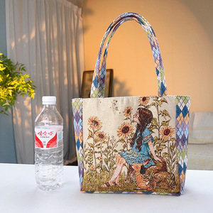 菱形キャンバスバッグ両面ゴールド刺繍ファッションハンドバッグデイリーポータブルハンドバッグ仕事弁当ハンドバッグ
