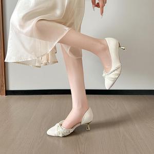太った足が広くて太った大きいサイズの女性靴夏のファッションのしわの真珠は内側の中空の細いハイヒールを持ちます。